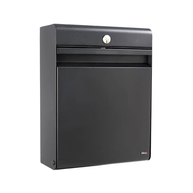 Allux Holscher Design Postkasse M stift Rukolås Sort Denne postkasse er robust og ekstrem stærk, den er i et design af Knud Holscher, Postkassen er fremstillet i , mm galvaniseret stålplade, med en vægt på hele , kg. Sider og kanter er sl…