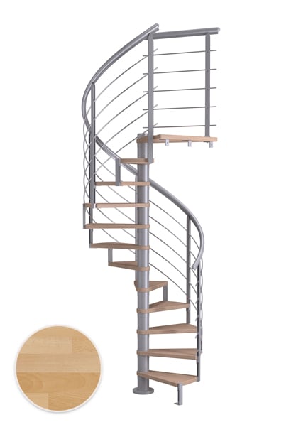 Designfolk fandt Dolle Montreal Spiral Bøg Olieret Pearl Grey Design 14t ø120 fra Dolle hos stigefabrikken