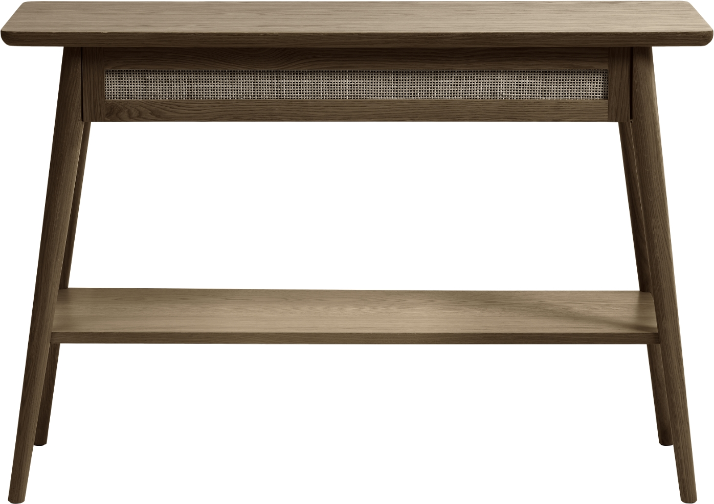 Designfolk fandt Konsolbord Nordique Design Barrali Røget Egetræ Med Rattan Skuffe Hylde H75b40l110 fra Nordique Design hos likehome