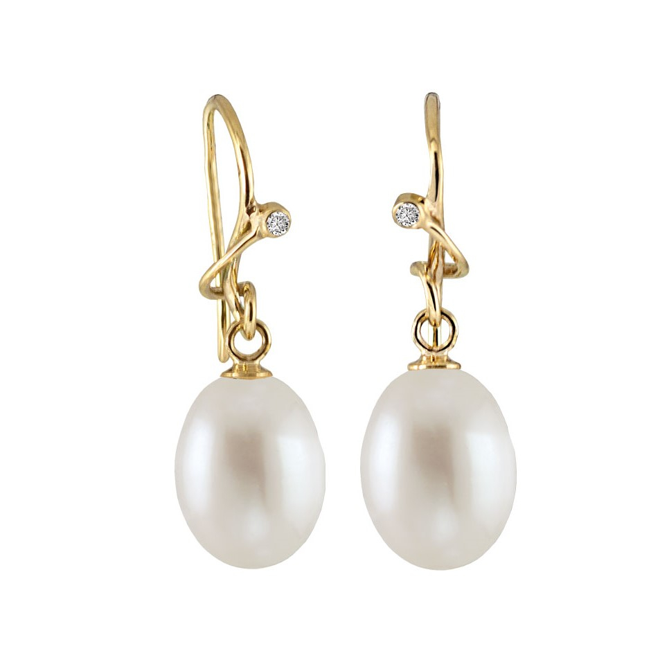 Guldøreringe med hvid ferskvandsperle og diamant fra design Carmine fra Rabinovich smykker. kt. guld, hvid ferskvandsperle, , ct. diamant…