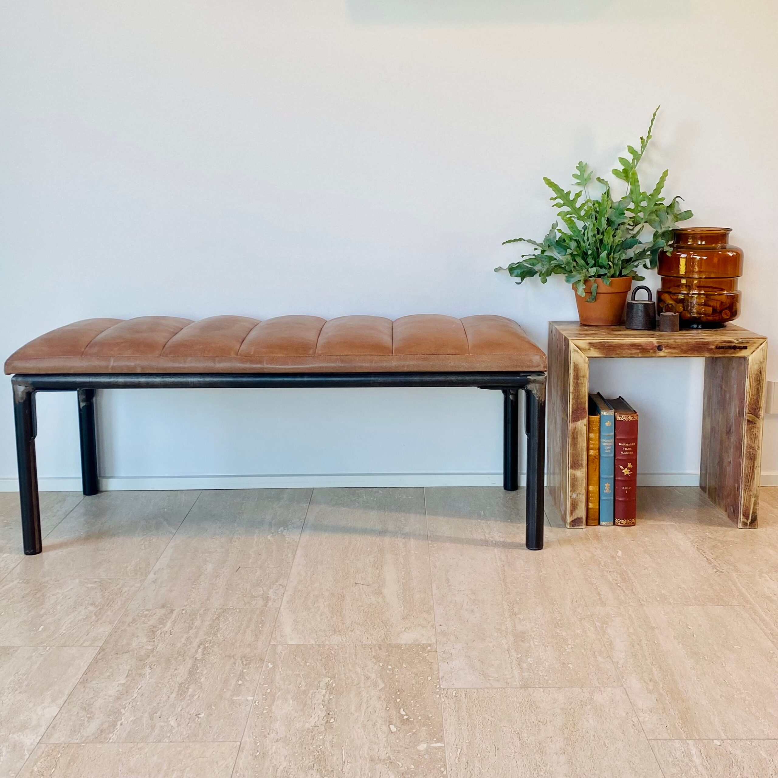 Denne multifunktionelle og meget eksklusive bænk kan anvendes i alle rum og skabe en funktionel og kreativ helhed. Blandingen af råt jern og det bløde læder giver en stemning du kan drømme dig helt væk i. H: cm x W: cm x D: cm…