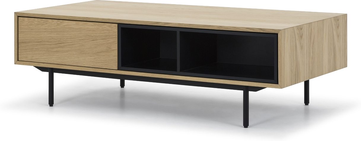 Designfolk fandt Sofabord Nielsen Design Hasseris 120×60 Egetræsfinr Natur Med Hylde Sort Stålstel fra Nielsen Design hos likehome